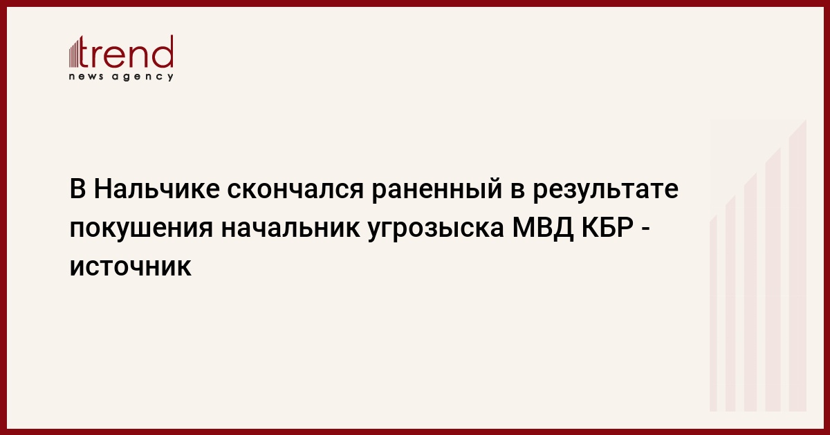 Начальник Управления уголовного розыска МВД по Кабардино-Балкарии полковник Зубер Шукаев скончался в Нальчике в реанимации Республиканской клинической больницы после покушения, совершенного в субботу вечером, сообщил агентству "Интерфакс-Юг" источник в правоохранительных органах КБР.