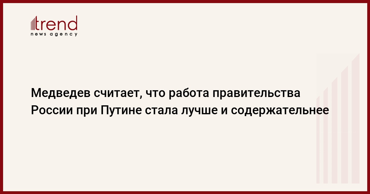 Президент России Дмитрий Медведев считает, что система власти в России работает лучше, чем раньше, до 2008 года, - правительство стало более активным, а его деятельность более содержательная, пишет РИА Новости.