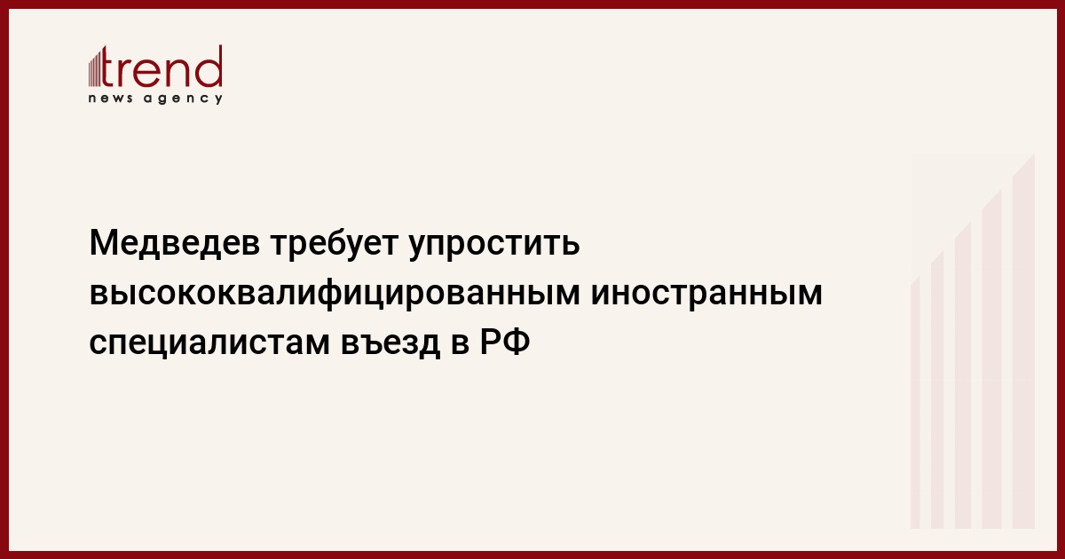 Президент РФ Дмитрий Медведев потребовал как можно скорее упростить въезд в Россию для высококвалифицированных иностранных специалистов, пишет РИА Новости.