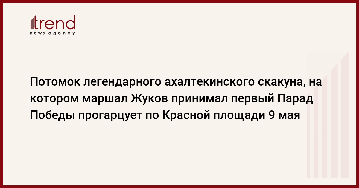 В Параде на Красной площади, посвященном 65-летию Победы в Великой Отечественной войне будет участвовать ахалтекинский скакун Гырат - родственник легендарного Арапа, на котором маршал Жуков принимал первый победный парад в 1945 году. Всадник на Гырате возглавит роту военных Туркмении.