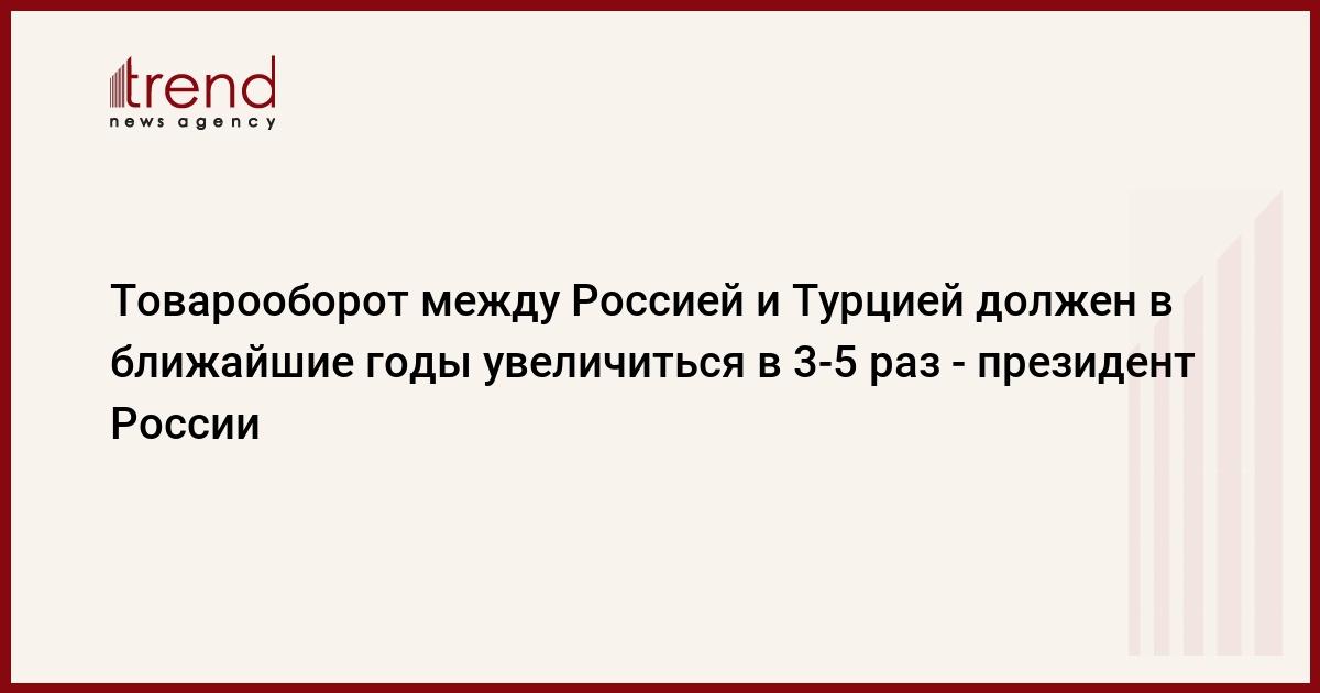 "Наша общая задача - увеличить объем российско-турецкой торговли в течение будущих пяти лет в три-пять раз", - говорится в статье российского президента для турецкой газеты "Заман".