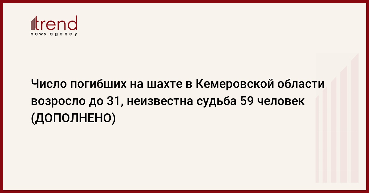 Она отметила, что, таким образом, из 19 пропавших в шахте спасателей на данный момент 18 найдены мертвыми. Число погибших на шахте возросло до 31 человека.