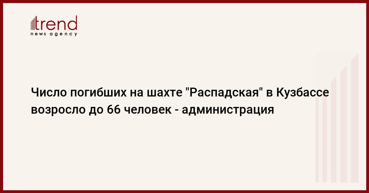Число погибших на шахте "Распадская" на юге Кузбасса в результате аварии в ночь на 9 мая возросло до 66 человек, судьба еще 24 горняков остается неизвестной, сообщил в четверг РИА Новости представитель пресс-службы администрации области со ссылкой на оперативный штаб по ликвидации последствий ЧС.