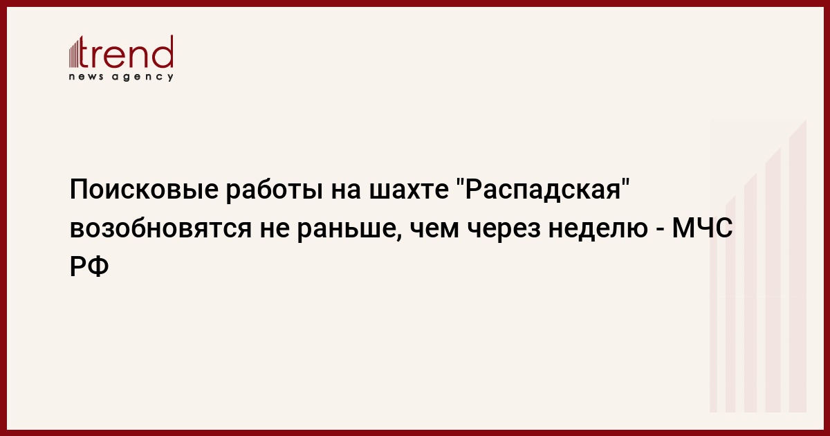 Горноспасатели возобновят дальнейшие поисковые работы на шахте "Распадская" в Кемеровской области не ранее, чем через неделю. Об этом сегодня сообщил журналистам главный военный эксперт МЧС России Павел Плат. "Когда точно возобновятся работы, сегодня этого невозможно сказать. Предварительные расчеты, которые у нас на руках, говорят, что они могут возобновиться не раньше семи суток", - отметил он, пишет РБК.