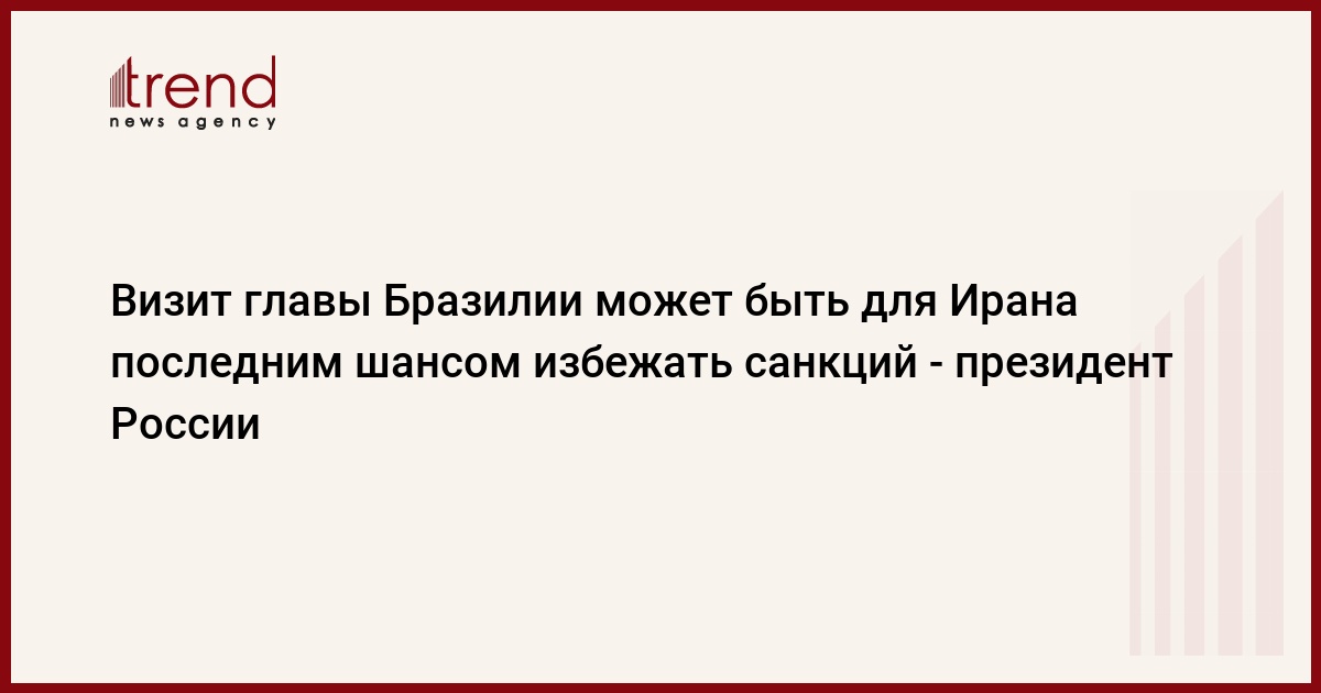 Визит президента Бразилии в Иран, возможно, является последней возможностью решить без санкций иранскую ядерную проблему, заявил президент РФ Дмитрий Медведев на пресс-конференции по итогам переговоров с бразильским коллегой, пишет РИА Новости.
