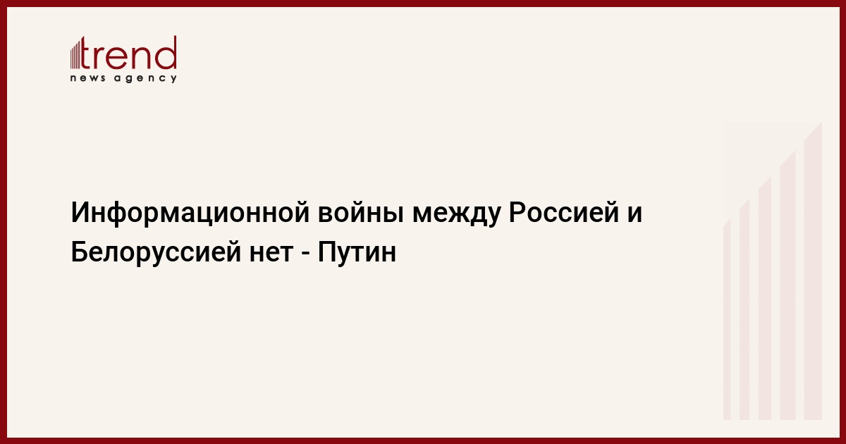 Председатель правительства РФ Владимир Путин убежден, что никакой информационной войны между Россией и Белоруссией нет, передает РИА Новости.