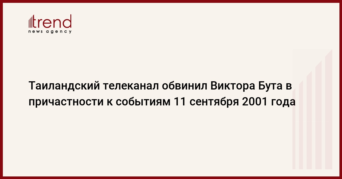 Седьмой национальный телеканал Таиланда в новостном выпуске в среду в 17.00 (14.00 мск) продемонстрировал сюжет, посвященный российскому предпринимателю Виктору Буту, в котором утверждается со ссылкой на американские спецслужбы, что Бут якобы причастен к событиям 11 сентября 2001 года в Нью-Йорке, пишет РИА Новости.