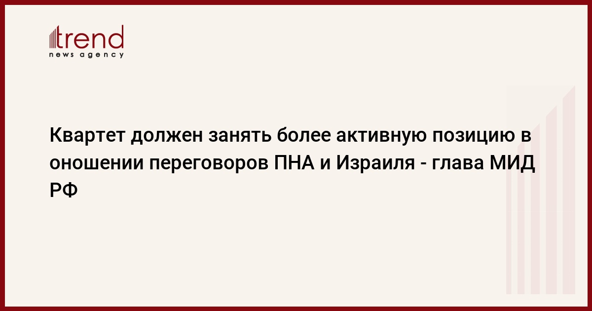 Квартету международных посредников следует занимать более активную позицию для организации палестино-израильских переговоров, заявил глава МИД РФ Сергей Лавров журналистам в Париже, где он находится с рабочим визитом, пишет РИА Новости.