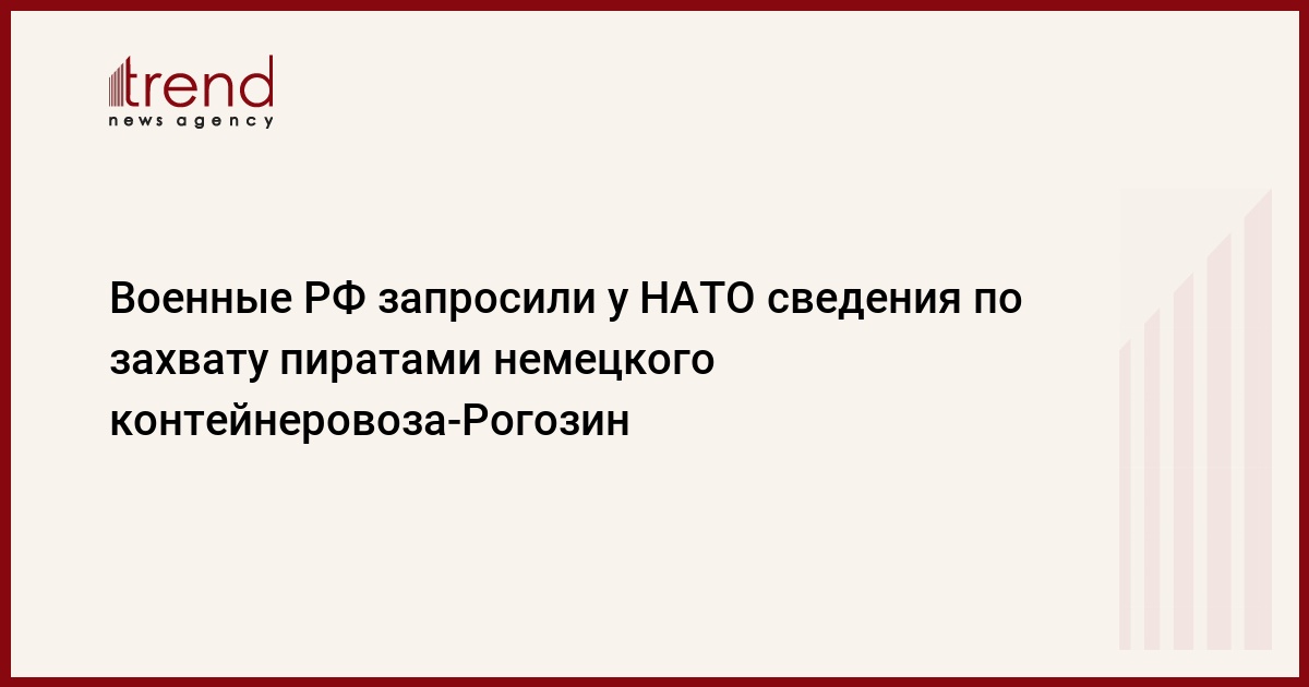 Постоянный представитель России при НАТО Дмитрий Рогозин дал поручение российским военным из состава группы связи при штабе объединенного командования вооружёнными силами НАТО в Европе выяснить у военного руководства альянса детали захвата пиратами немецкого контейнеровоза Magellan Star и положение его экипажа, сам Рогозин сообщил РИА Новости.