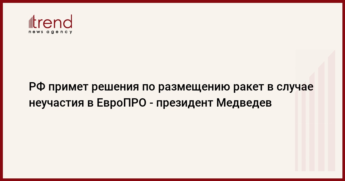 "Наши партнеры (по НАТО) должны понимать, что нам это нужно не для того, чтобы поиграть в какие-то совместные игрушки с НАТО, а для того, чтобы Россия была надлежащим образом защищена. В этом обязанность моя как президента и других государственных служащих. Поэтому с этим шутить не следует - мы ждем от наших натовских партнеров прямого и недвусмысленного ответа - где они видят место России (в системе ЕвроПРО). В любом случае, мы либо вместе с НАТО, либо отдельно найдем достойный ответ на существующую в настоящий момент проблему", - сказал Медведев.