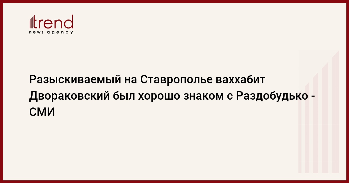 Объявленный в розыск ГУВД Ставропольского края уроженец дагестанского Хасавюрта 24-летний Виктор Двораковский был хорошо знаком с "русским ваххабитом" Виталием Раздобудько, который, предположительно, и был смертником, взорвавшим одну из бомб в Губдене 14 февраля, пишет в среду газета "Коммерсант".