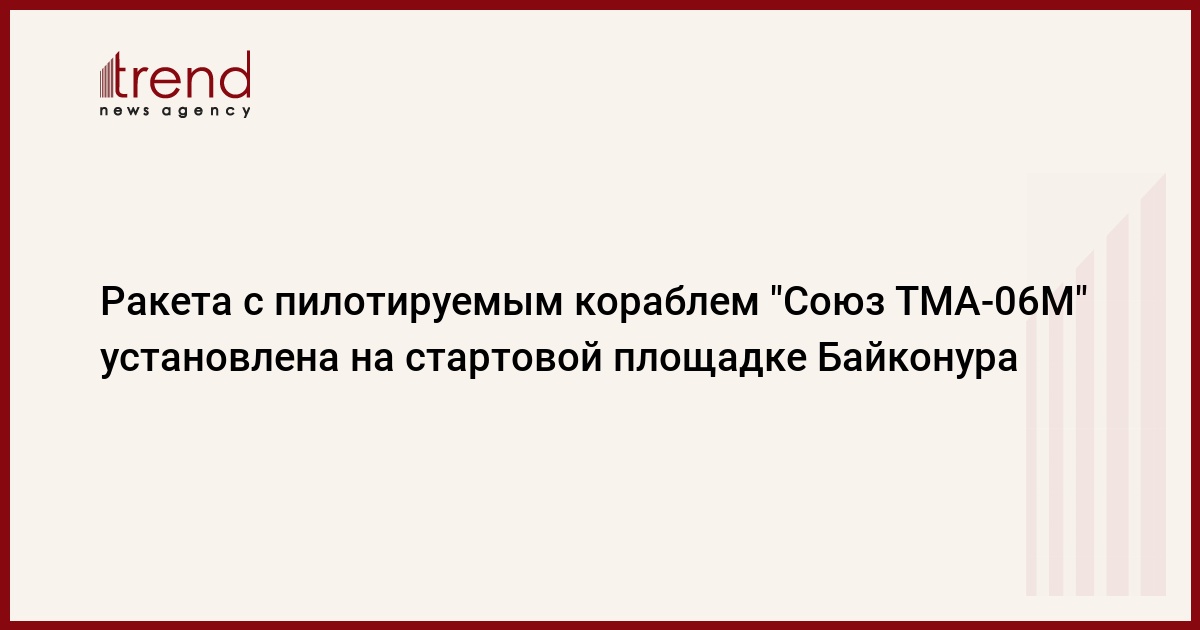 Ракету-носитель "Союз-ФГ" с пилотируемым кораблем "Союз ТМА-06М" вывезли из монтажно-испытательного комплекса и установили на 31-й стартовой площадке космодрома Байконур, сообщил РИА Новости представитель Роскосмоса.
