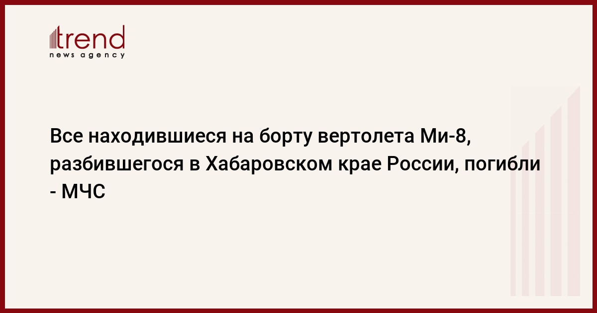 Все члены экипажа и пассажир, находившиеся на борту вертолета Ми-8, разбившегося в Хабаровском крае, погибли, сообщил РИА Новости представитель Дальневосточного регионального центра МЧС РФ.