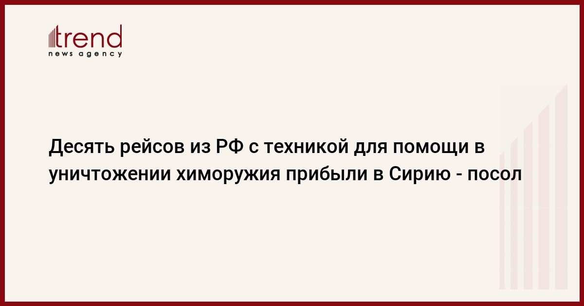 Десять рейсов с российской техникой, предназначенной для помощи в ликвидации химоружия прибыли в сирийский город Латакию, сообщил РИА Новости посол РФ в Сирии Азамат Кульмухаметов.