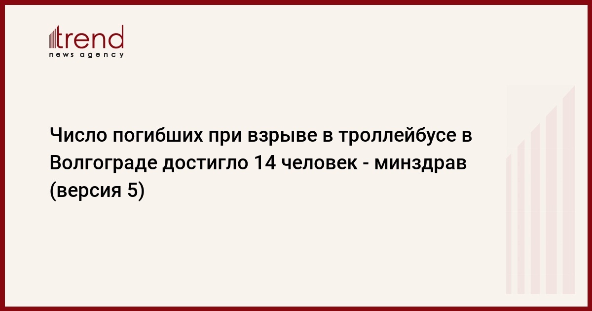 Ранее минздрав сообщал о десяти погибших и 28 пострадавших в волгоградском троллейбусе. В то же время администрация области ранее заявляла о 12 погибших.