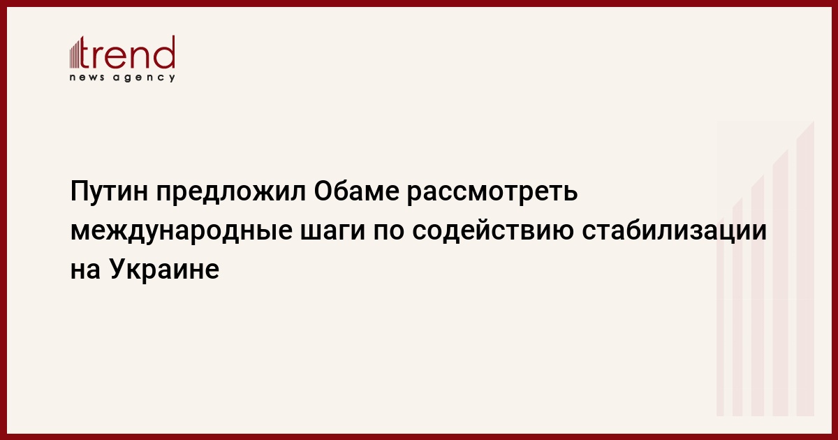 Президент России Владимир Путин обсудил в ходе телефонного разговора со своим американским коллегой Бараком Обамой кризис на Украине и предложил рассмотреть возможные шаги международного сообщества по содействию стабилизации обстановки, сообщает РИА Новости со ссылкой на пресс-службу Кремля в субботу.