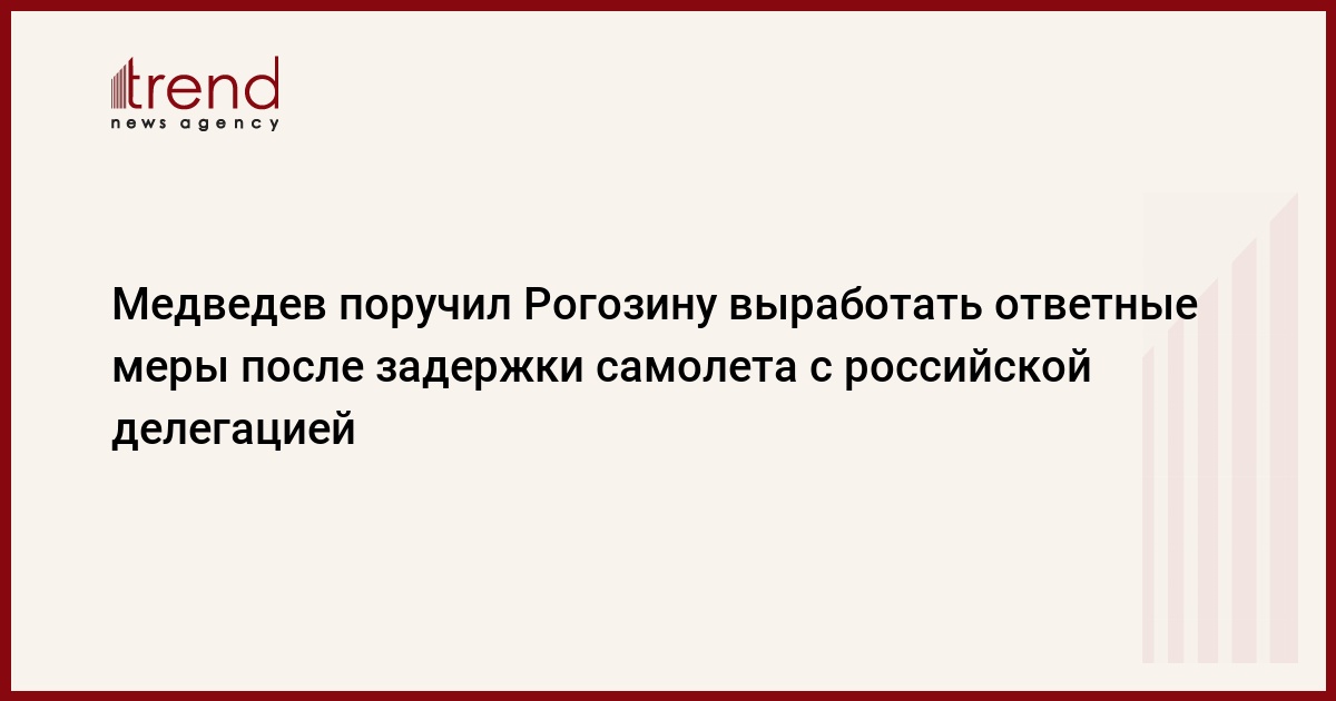 Премьер-министр РФ Дмитрий Медведев поручил своему заместителю Дмитрию Рогозину выработать меры в ответ на ситуацию с задержкой самолета, на борту которого находилась официальная делегация РФ, 9 мая. "Обсудите с МИДом, какие меры необходимо предпринять, чтобы эти подобные действия не повторялись", - заявил он, обращаясь к Рогозину, на совещании с вице-премьерами, передает ИТАР-ТАСС.