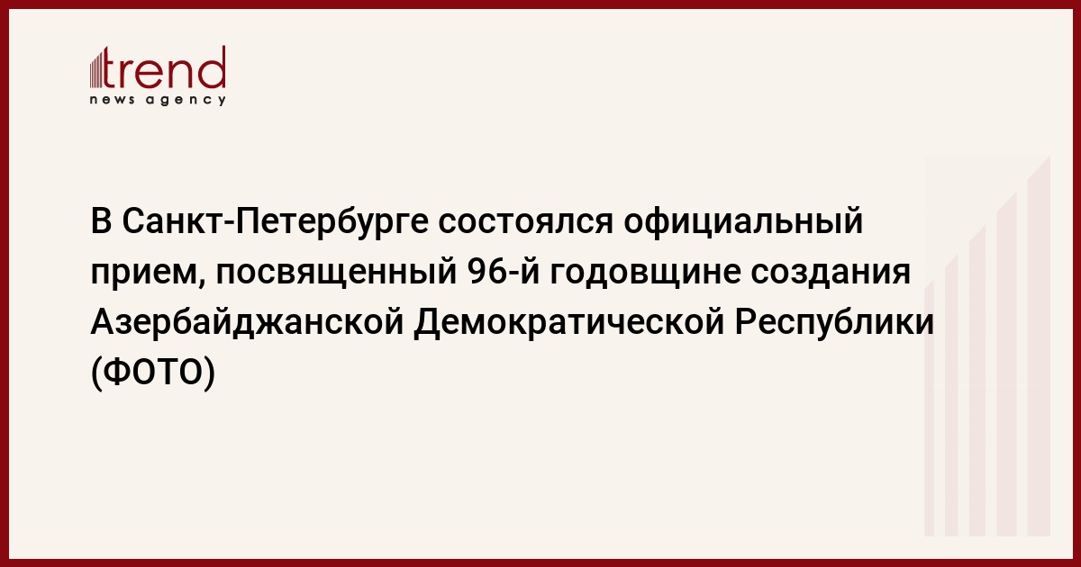 26 мая в гостинице "Эрмитаж" состоялся официальный прием, посвященный 96-й годовщине создания Азербайджанской Демократической Республики. Мероприятие было организовано Генеральным консульством Азербайджанской Республики в Санкт-Петербурге, сообщает пресс-служба Генерального консульства.