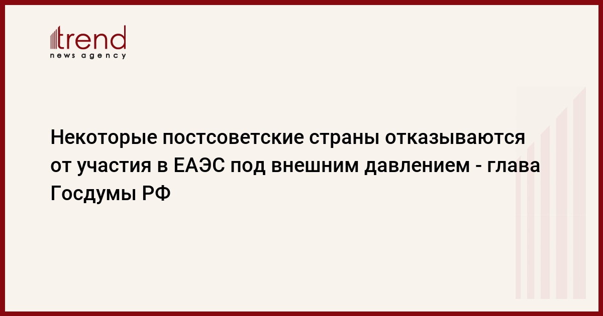 АСТАНА /Trend/ - Председатель Государственной думы России Сергей Нарышкин считает, что некоторые постсоветские государства отказываются от участия в Евразийском экономическом союзе под внешним давлением.