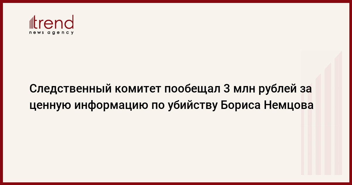 Следствие готово выплатить 3 млн рублей за ценную информацию по уголовному делу об убийстве политика. "Анонимность всем обратившимся гарантируется", - сообщили в СК.