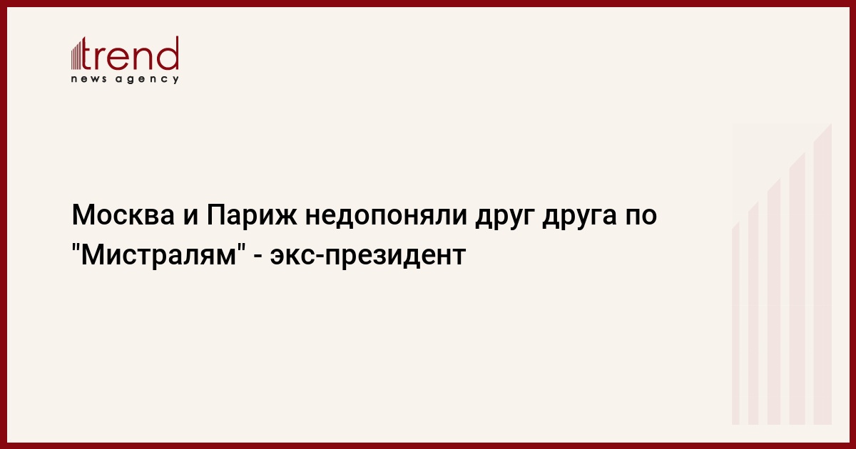 Бывший президент Франции Валери Жискар д'Эстен полагает, что между Парижем и Москвой "возникло недопонимание" по поставкам вертолетоносцев типа "Мистраль", пишет РИА Новости.