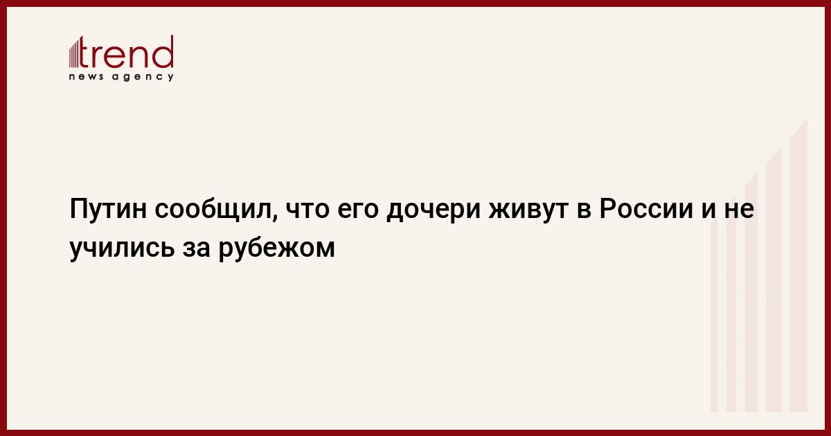 Президент России Владимир Путин рассказал, что его дочери живут в России, никогда не учились за рубежом и не занимаются бизнесом или политикой, передает РИА Новости.
