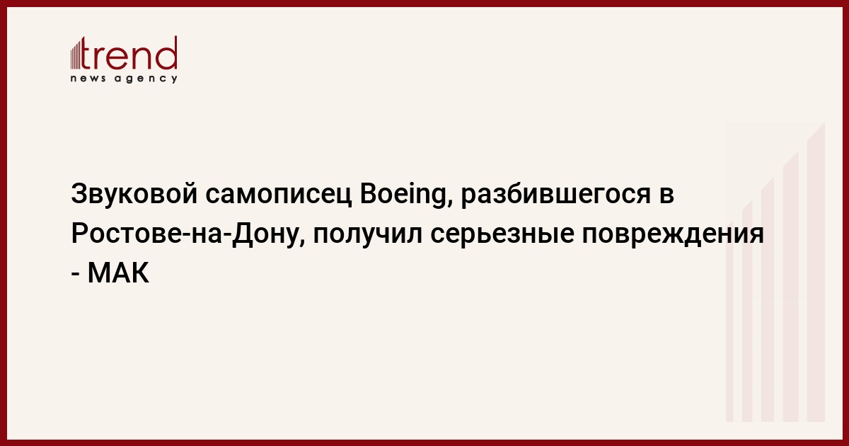 Звуковой самописец разбившегося в Ростове-на-Дону Boeing получил серьезные повреждения, идут работы по его восстановлению, сообщил замглавы Межгосударственного авиационного комитета Сергей Зайко, пишет РИА Новости.