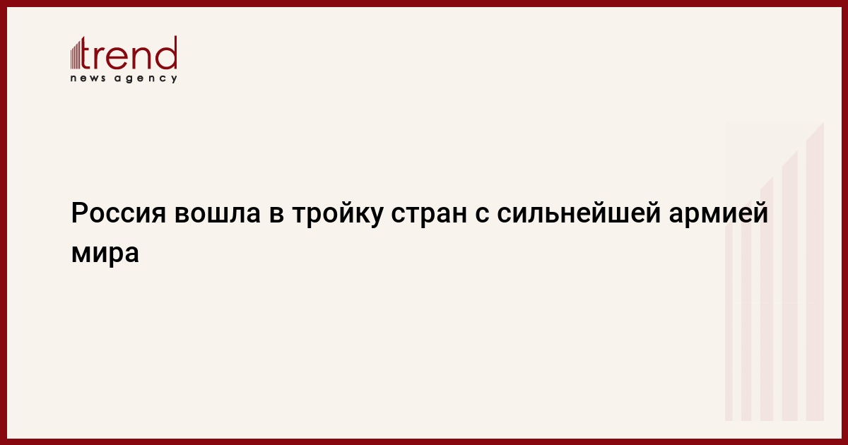 Россия вошла в тройку стран с сильнейшей армией мира, заняв второе место в опубликованном на портале Global Firepower рейтинге. сообщает РИА Новости.