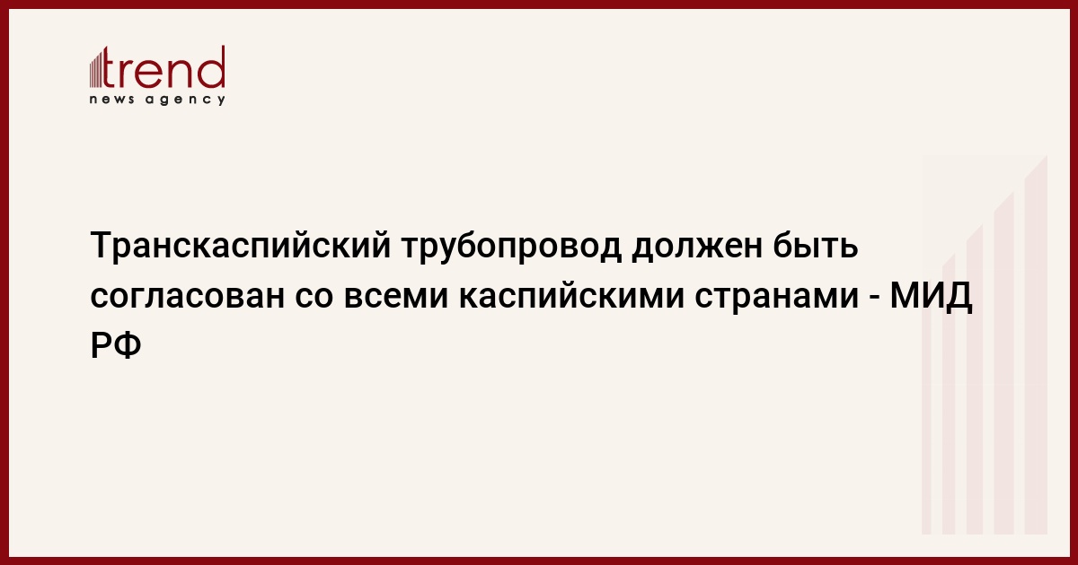 Прокладка транскаспийских трубопроводов должна быть согласована всеми прикаспийскими странами. Об этом заявил посол по особым поручениям МИД РФ Игорь Братчиков. Текст его ответа на вопрос о возможности строительства Транскаспийского газопровода после подписания Конвенции о правовом статусе Каспийского моря размещен в пятницу на сайте МИД РФ, передает ТАСС.
