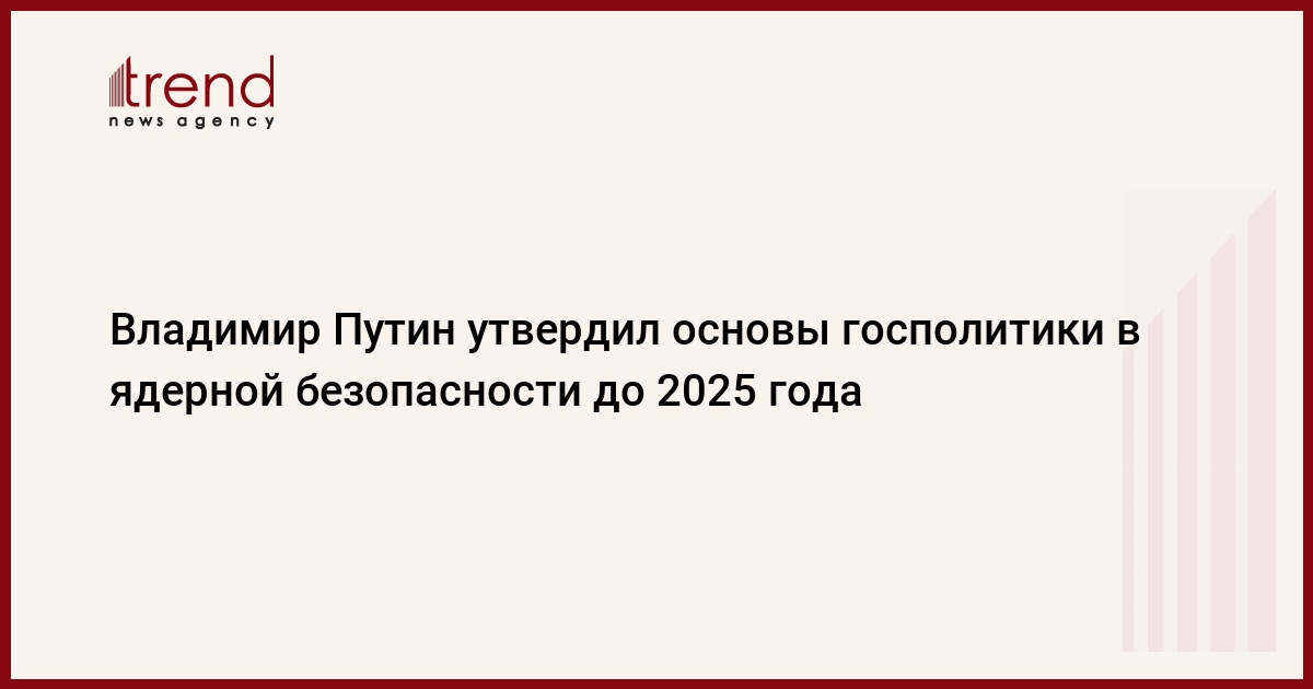 Президент России Владимир Путин утвердил Основы государственной политики в области ядерной и радиационной безопасности до 2025 года, соответствующий указ опубликован на официальном интернет-портале правовой информации, передает в понедельник РИА Новости.