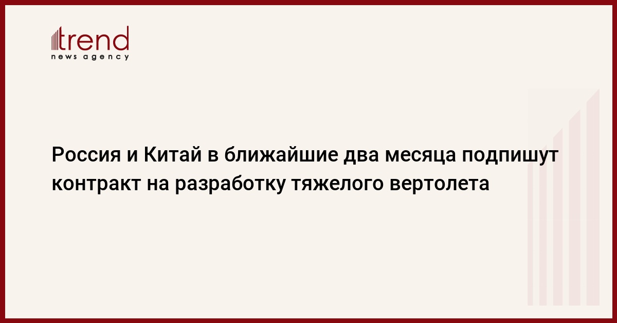 Контракт на создание тяжелого вертолета нового поколения в скором времени будет подписан между Россией и Китаем. Об этом в среду сообщил журналистам директор по международному сотрудничеству и региональной политике Ростеха Виктор Кладов на выставке AERO INDIA - 2019, передает Trend со ссылкой на ТАСС.