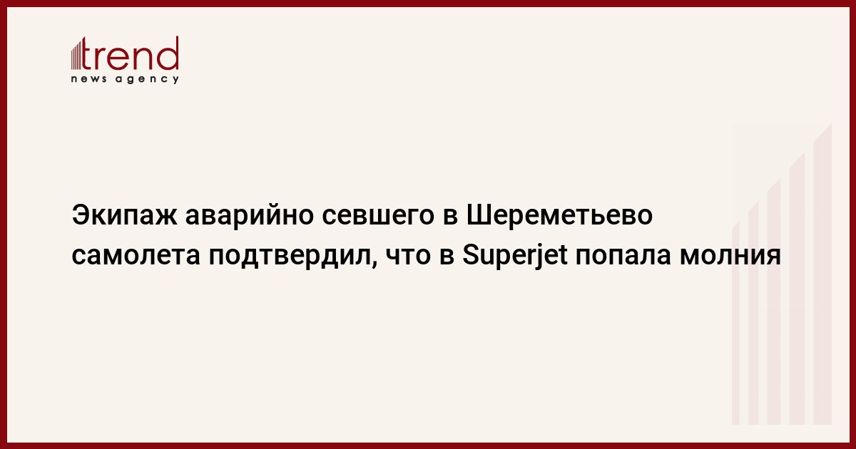Основная версия возгорания на борту самолета Sukhoi Superjet 100 в аэропорту Шереметьево - попадание молнии, сообщили ТАСС в экстренных службах, передает Trend.