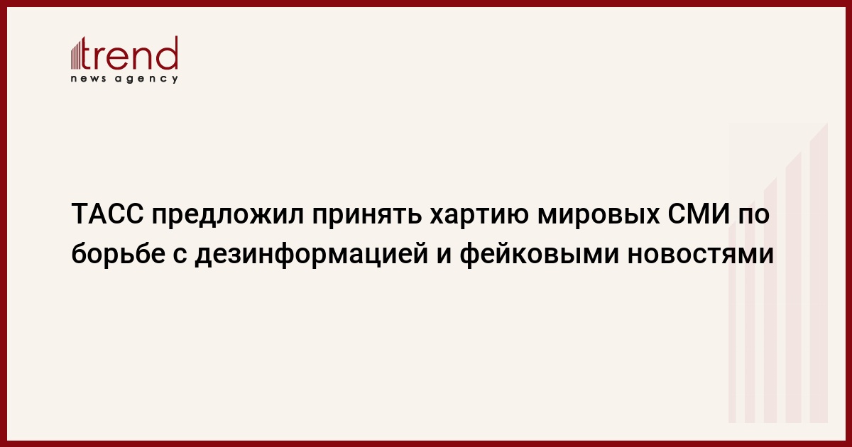 Информационное агентство России ТАСС выступило в понедельник с инициативой принятия хартии мировых СМИ по борьбе с дезинформацией и фейковыми новостями. Об опасности распространения в медийном пространстве ложных новостей говорилось на проходящем в Шанхае заседании президиума Всемирного медиа саммита, сообщает Trend со ссылкой на ТАСС.