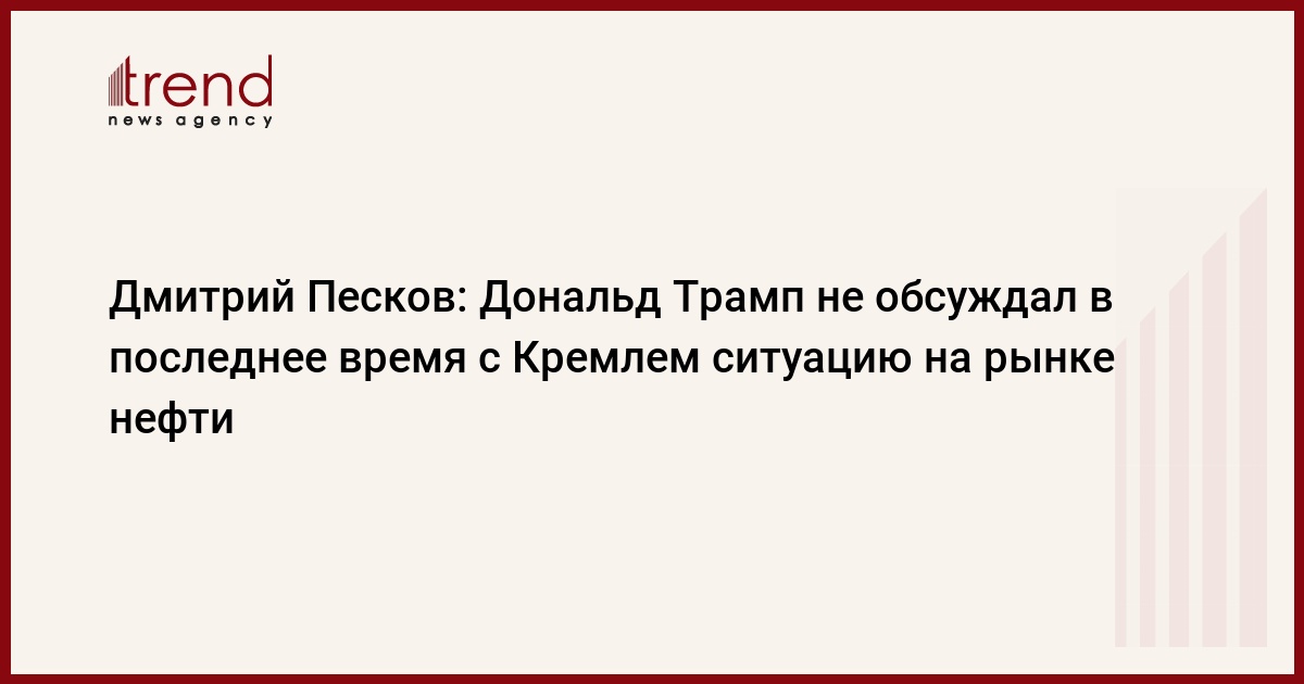Президент США Дональд Трамп не обсуждал в последнее время с Кремлем ситуацию, связанную с падением цен на нефть. Об этом заявил журналистам в четверг пресс-секретарь президента России Дмитрий Песков, комментируя публикацию в газете Politico, передает Trend со ссылкой на ТАСС.