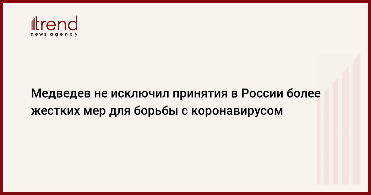 Заместитель председателя Совета безопасности России Дмитрий Медведев не исключил принятия более жестких мер, если ситуация с коронавирусом в РФ будет развиваться по негативному сценарию, передает Trend со ссылкой на ТАСС.