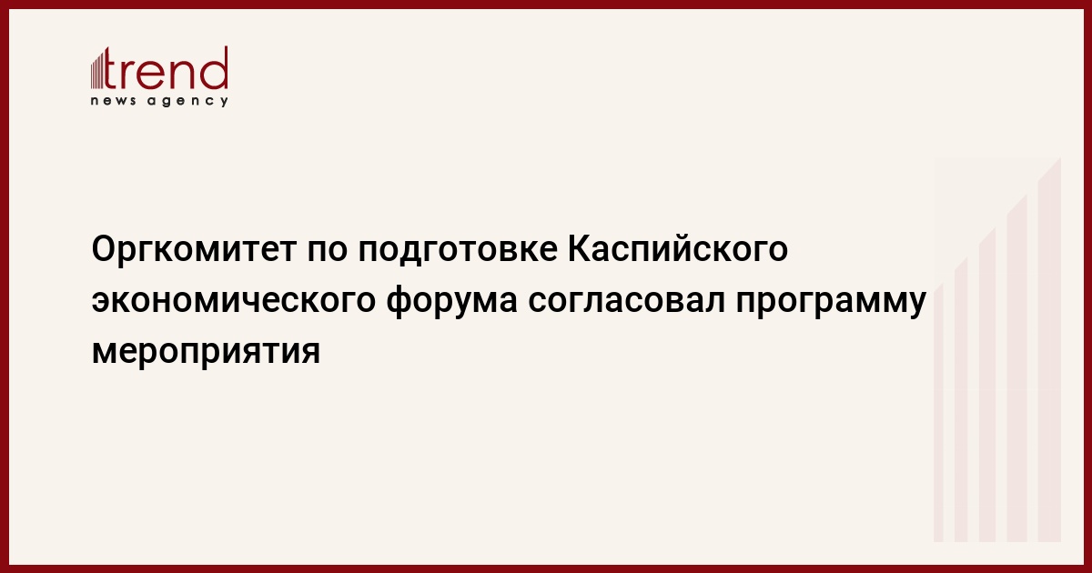БАКУ /Trend/ - Участники Оргкомитета по подготовке и проведению II Каспийского экономического форума под председательством министра экономического развития России Максима Решетникова согласовали программу проведения мероприятия, сообщает в пятницу Trend.
