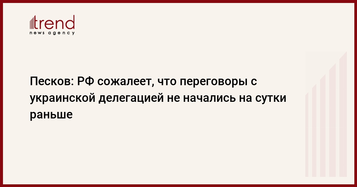 Москва сожалеет, что переговоры с украинской стороной не начались на сутки раньше, такая возможность была. Об этом заявил в понедельник журналистам пресс-секретарь президента России Дмитрий Песков, передает Trend со ссылкой на ТАСС.