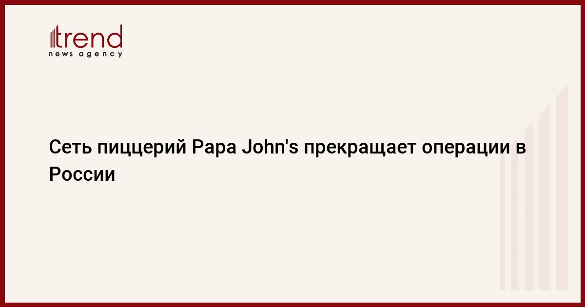 Американская сеть пиццерий Papa John's International Inc объявила о прекращении всех корпоративных операций в России, сообщает Trend со ссылкой на Интерфакс.