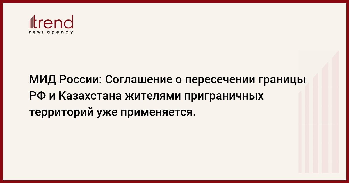 Межправительственный документ был подписан 3 октября в Уральске (Республика Казахстан). Как отмечает департамент, целесообразность заключения данного соглашения обусловлена обоюдным стремлением России и Казахстана к сохранению и углублению исторически сложившихся тесных родственных и дружеских контактов между жителями российского и казахстанского приграничья. В этих регионах сформировались особые общественные, хозяйственные, культурные и гуманитарные связи, поддерживать и укреплять которые призван подписанный документ, сообщает Trend со ссылкой на РБК.
