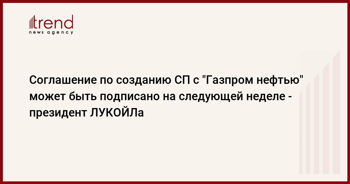 Соглашение по созданию совместного предприятия (СП) ОАО "НК "ЛУКОЙЛ" и ОАО "Газпром нефть" может быть подписано на следующей неделе. Об этом сообщил сегодня журналистам в Москве президент ЛУКОЙЛа Вагит Алекперов. По его словам, соглашение подготовлено и согласовано с новым руководством "Газпром нефти".