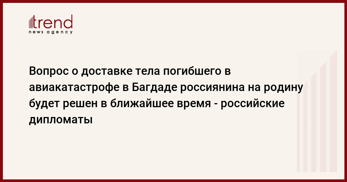 Вопрос о доставке тела погибшего в авиакатастрофе в Багдаде россиянина на родину будет решен в ближайшее время.
