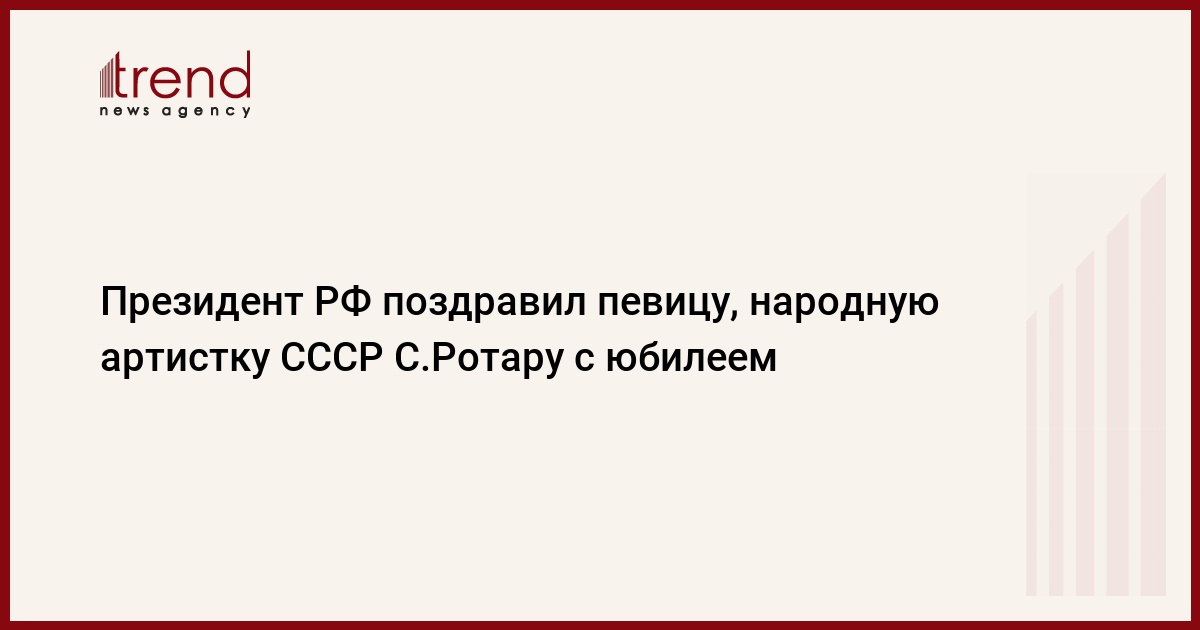 Президент России Владимир Путин поздравил с юбилеем певицу, народную артистку СССР Софию Ротару. Об этом сообщает пресс-служба главы Российского государства, передает РБК ."Творчество неповторимой Софии Ротару - одна из самых ярких страниц современного эстрадного искусства. Редкий по красоте голос, артистический темперамент и безупречный художественный вкус по праву снискали признание и любовь нескольких поколений слушателей. Ваши песни идут от самого сердца, и потому у них долгая и счастливая жизнь", - говорится в поздравлении.