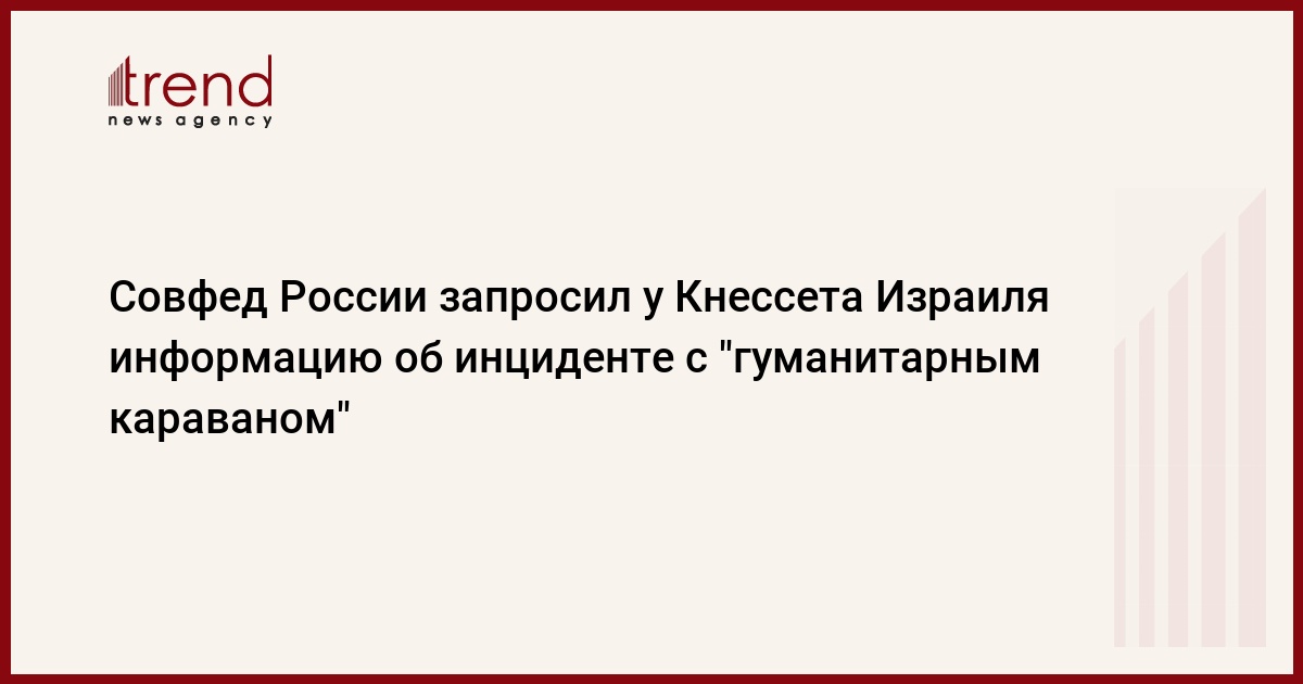 Председатель комитета Совета Федерации по международным делам Михаил Маргелов направил в понедельник в адрес главы комиссии Кнессета (парламента) Израиля по иностранным делам и обороны Цахи Анегби письмо, в котором попросил своего израильского коллегу предоставить более полную информацию об инциденте с "гуманитарным караваном".
