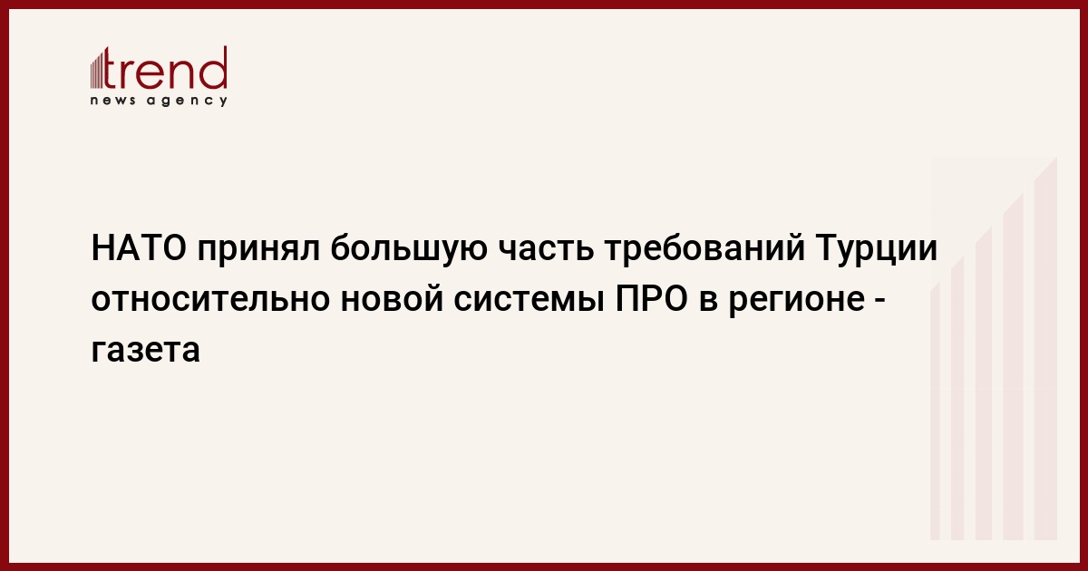 НАТО принял большую часть требований Турции относительно новой системы ПРО в регионе. Об этом сегодня пишет турецкая газета "Заман" в связи с открывающимся в Лиссабоне двухдневным саммитом альянса.