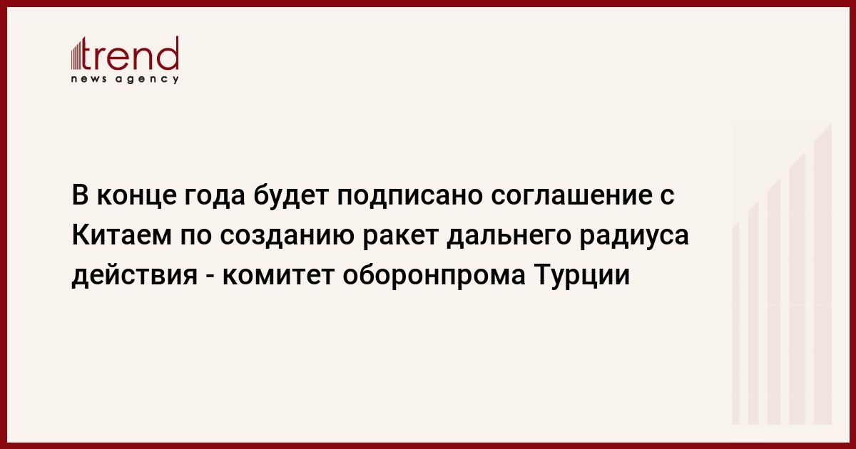 В конце года будет подписано соглашение с Китаем по созданию ракет дальнего радиуса действия, сообщает в пятницу Комитет оборонной промышленности Турции.