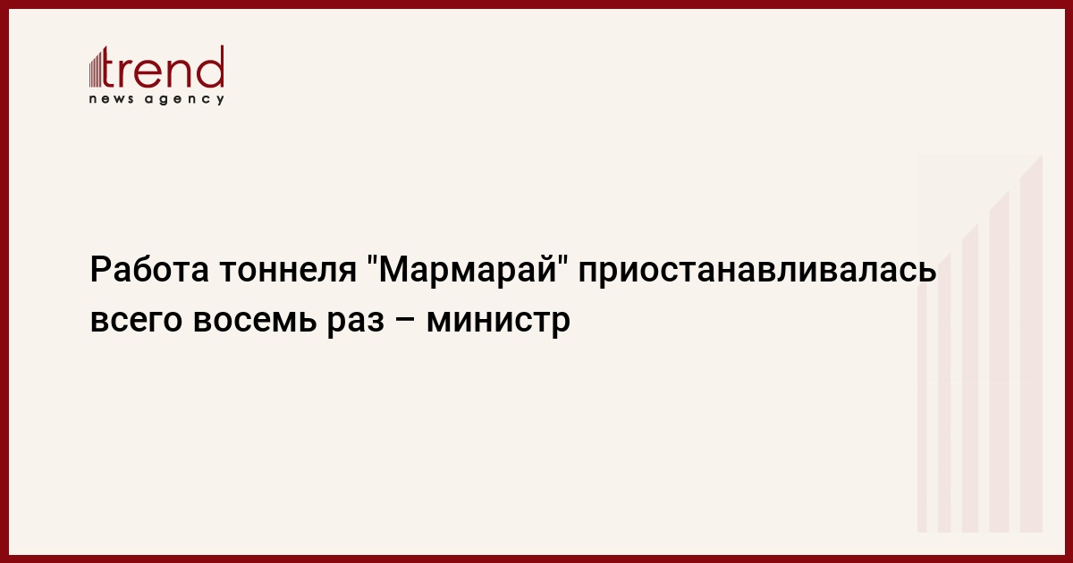 Функционирование тоннеля "Мармарай" после сдачи в эксплуатацию приостанавливалось всего восемь раз, сказал министр транспорта, судоходства и коммуникаций Турции Бинали Йылдырым, передает во вторник телеканал TRT Haber.