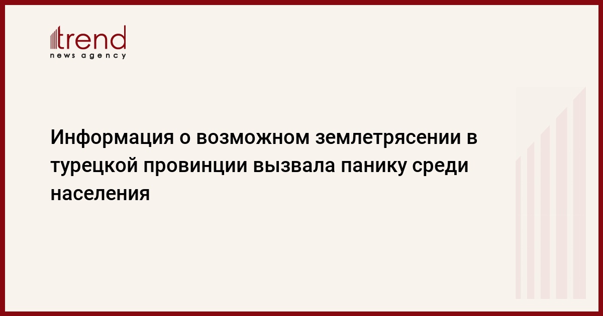 Информация о возможном землетрясении в двух городах турецкой провинции Текирдаг вызвала панику среди населения, пишет в четверг турецкая газета Milliyet.