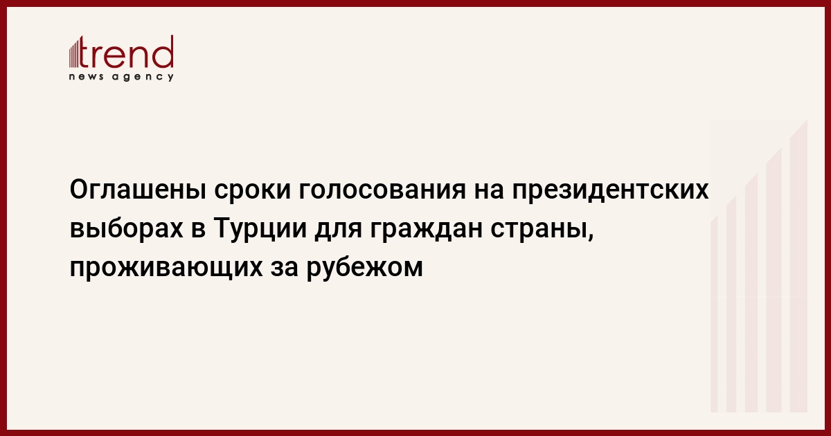 БАКУ /Trend/ - Обнародованы сроки проведения голосования в рамках президентских выборов в Турции для граждан страны, проживающих за рубежом. Об этом сообщает в среду турецкое агентство "Anadolu".