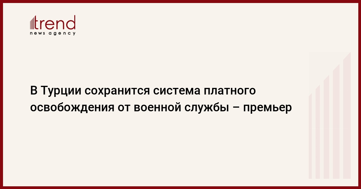 БАКУ /Trend/ - В Турции продолжит действовать система платного освобождения от военной службы. Об этом заявил премьер-министр страны Ахмет Давутоглу, сообщает во вторник телеканал TRT Haber.