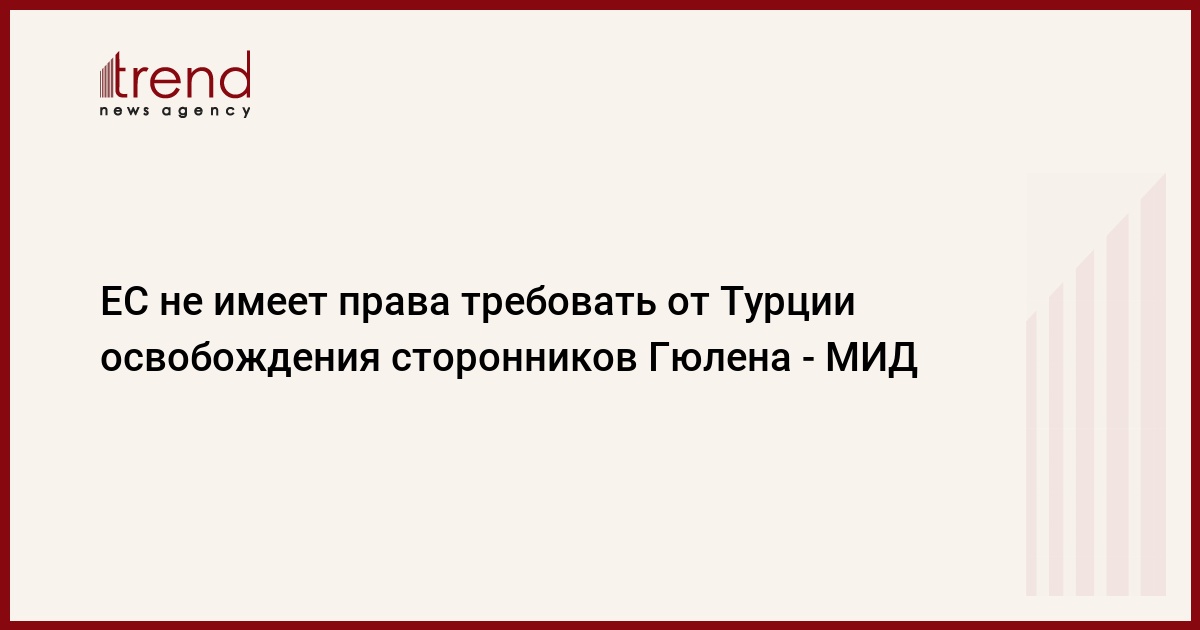 БАКУ /Trend/ - ЕС не имеет права требовать от Турции освобождения сторонников Фетхуллаха Гюлена, сказал глава МИД Турции Мевлют Чавушоглу .Об этом сообщает во вторник телеканал TRT Haber.
